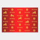 2023 Year of The Rabbit Red and Gold Wrapping Paper Sheets. Gold digital effect.