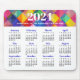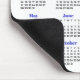 A horizontal mouse pad features a 2024 year-at-a-glance calendar with the months in blue (or change to any colour) and your business information over a colourful kaleidoscope print at the top. Perfect for your desk or give to customers and clients.