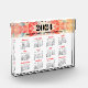 A horizontal clear acrylic block features a 2024 year-at-a-glance calendar with the months and your business information over a colourful kaleidoscope print at the top. Perfect for your desk or give to customers and clients.