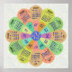Keep track of the date in 2024 with this beautiful calendar poster. This unique design forms the shape of a flower, with the calendar months in a circle on its petals. It has a retro hippie / bohemian look, with a swirled background. The colours are all shades of green, orange, coral pink, purple, and blue in the centre. Customize / personalize to make changes. Tip: The swirled background pattern can be removed and replaced with a "background colour" of your choice. Choose your own poster size.