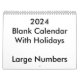 2024 Calendrier Blanc Avec Vacances Nombres Grands