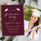 This classic, modern graduation party invitation features white text on a burgundy background. The word "Graduation" and the name of the graduate appear in casual modern handwriting font beneath a pair of white mortar board caps. Customize the invitation with party details, and replace the sample image on the back with a photo of your grad.