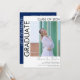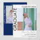 Modern Minimalist Two Photo Graduation Announcement & Grad Party Invitation with black text on white background. Back side is navy blue with white text