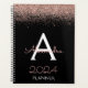 2024 Or rose - Rose saumon et paillettes noires Cahier à spirale avec nom et initiale. C'est le cadeau idéal pour un anniversaire sweet 16, un mariage, une fête de fiançailles, un anniversaire de mariage, une baby shower ou une soirée d'enterrement de vie de jeune fille pour quelqu'un qui aime le luxe clinquant et les styles chics.