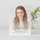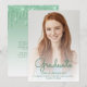 Trendy modern graduation announcement featuring a custom vertical photo. The word "Graduate" appears in green handwriting script overlay, with the graduate's name, school and year of graduation below in sans serif font. Easily replace the sample image with your own graduate's photo. A white gradient screen helps ensure the text pops. Add details about your graduate's accomplishments and future plans on the reverse, which features a green dripping faux glitter border on an ombre background.