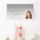 Celebrate her graduation from high school or college with this chic, glamourous photo banner, featuring a sparkly silver faux glitter drip border and ombre background. Easily replace the sample image with a photo of the graduate. Personalize it with her name in grey handwriting script, with the class year and school name below in sans serif font.