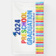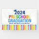 This fun 2024 preschool graduation banner features a cool grad cap above colourful writing and a row of crayons in rainbow. Cute customizable Pre-K graduate congratulations decor in fun colours for your preschoolers. Congratulations to our PreK grads!