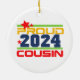 Proud Cousin 2024 dated ornament with colourful stars and text, a great gift for the new cousin of a baby born in 2024.