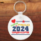 Proud New Grandpa 2024 key chain, great for the new grandfather with multicolors text and stars design.