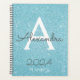 2024 Turquoise Bleu Aqua Pailleté Monogramme Nom et Initial Bloc-Notes Spirale Planificateur. C'est le cadeau idéal pour un anniversaire des 16 ans, un mariage, une douche de mariée, un anniversaire de mariage, une baby shower ou une soirée d'enterrement de vie de jeune fille pour quelqu'un qui aime le luxe glamour et les styles chics.