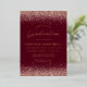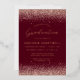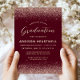 This chic graduation party invitation features top and bottom borders of rose gold faux glitter on a burgundy red background The word "Graduation" appears in real rose gold foil handwriting script. Customize the rose gold foil sans serif text with the name of the graduate and the party details.