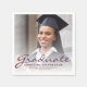Modern graduation party napkins featuring a custom photo with text overlay. Easily replace the sample image with a photo of your graduate. The word "Graduate" appears in burgundy handwriting script, with the name, school, and year of graduation below in sans serif font. A white gradient overlay helps make the burgundy text pop. Ideal for high school or college graduation.