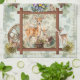 Cute woodland deer family 2025 calendar towel with buck, doe, fawn, pansies and acorn border, light green camouflage. Thanks for looking.