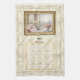 2025 Calendar towel tea towel - Framed scene of Paris from inside an apartment - decorative kitchen towel. Off white damask pattern background. The text "Paris" can be changed to any personalized message you like. Thanks for looking.