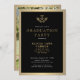 Elegant gold typography, scales of justice and frame law school graduate party invitation. Easy to personalize with your graduate celebration details and photo on both sides.