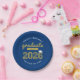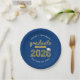 Any colour - Bold Gold 'Graduate' Typography Scribbles With A Gold Graduation Cap / Mortarboard Accent On A Dark Navy Blue Background, Class Of 2024/2025 Graduation Party Paper Plate.