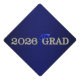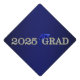 Royal blue damask sets off silver faux diamond looking 2025 text trimmed in gold with a blue graduation cap for the class of 2025 graduate.