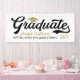 Graduation party banner feature a simple and stylish typography design with scholarly script "Graduate" wording and a grad cap with tassel accent. Personalize with your graduate's name, class year, and high school. Note, the gold, black, and white colours can be changed to match school or party colours.