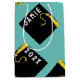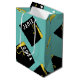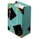 Creative Class of 25 graduation gift bag featuring black and gold grad caps on teal blue background. To personalize edit text to add his or her name and senior class year.