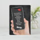 A hand holding a smartphone with a 2025 graduation diploma on a black leather background for a graduation party.