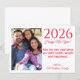 2025 happy new year, red script, holiday photo card