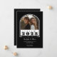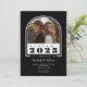 A modern black-and-white photo double graduation party invitation that is designed to celebrate two graduates in style. Featuring a sleek arch-shaped photo crop and "Class of 2025 in sophisticated typography, this invitation is sure to get noticed. Personalize the template by uploading your photo and adding the graduates' name and party details. On the back is a geometric pattern. All colours are editable by you! © Kimbellished, LLC