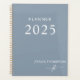 Customisé Dusty Blue Chic Elegant Moderne Monogrammed Simple Stylish Spiral 2025 Planificateur pour l'école, le collège ou le travail. Le planificateur est parfait pour retourner à l'école ou pour planifier une douceur douche 16, 18e, 21e, 30e, 40e, 50e ou 60e, douche mariage ou nuptiale, Bachelorette Party, Anniversaire, Quinceanera.
