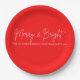 2025 Modern Merry and Bright Red Pink Christmas Paper Plate