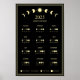 2025 Moon Phase Lunar Cycles Black and Gold Colour Minimalist Art Calendar Poster