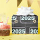 Glowing 2025 neon sign with a star on a dark grey brick wall