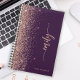 Personnalisez ce design moderne élégant avec votre nom en signature rose verticale rose manuscrite script sur un arrière - plan violet décoré d'une bordure en parties scintillant d'or rose. Ajoutez l'année en sans serif font. (Pour conserver les swashes au début et à la fin du nom, ne remplacez que les lettres, laissant les symboles en place.)