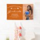 Celebrate your graduate's milestone in style with this graduation party banner. The left side features the words "Congratulations to our Graduate" in white text decorated with a pair of white mortar board caps on a burnt orange background, while a vertical photo of the grad appears on the right. Personalize it with your grad's name, school, and year of graduation.