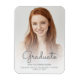 Trendy modern graduation announcement magnet featuring a custom vertical photo with text overlay. The word "Graduate" appears in grey handwriting script, with the graduate's name, school and year of graduation below in sans serif font. Easily replace the sample image with your own graduate's photo. A white gradient screen helps ensure the text pops.
