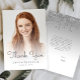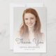 Trendy modern graduation thank-you card featuring a custom vertical photo. The words "Thank You" appear in grey handwriting script overlay, with the graduate's name and year of graduation below in sans serif font. Easily replace the sample image with your own graduate's photo. A white gradient screen helps ensure the text pops. The reverse side features a silver dripping faux glitter border on an ombre background. Customize the text with your own thank-you note, or delete it to provide room for individual handwritten messages.