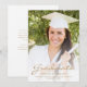 Modern graduation announcement featuring a custom vertical photo. The word "Graduate" appears in gold script, with the graduate's name, school and year of graduation below in sans serif font. Easily replace the sample image with your own graduate's photo. A white gradient screen helps ensure the text pops. Add details about your graduate's accomplishments and future plans on the reverse in gold text on a white background. Ideal for high school or college graduation.