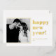 Happy New Year! Send holiday wishes to your loved ones with this customizable modern New Year flat card. It features bold typography. This gold foil New Year photo flat card is available in other colours and cardstock.