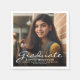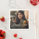 Modern graduation party napkins featuring a custom photo with text overlay. Easily replace the sample image with a photo of your graduate. The word "Graduate" appears in white handwriting script, with the name, school, and year of graduation below in sans serif font. A black gradient overlay helps make the white text pop. Ideal for high school or college graduation.