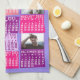 This personalized 2025 year monthly calendar kitchen towel has a mid-century modern geometric look with asymmetrical colour blocks and cut-out paper style typography. The colours are all various shades of pink and purple. Use the easy templates to add six of your favourite photos (horizontal work best, but all shapes will automatically adjust to fit the frames). This vibrant, ultra-mod calendar will help you conquer the new year. Always know what date it is and check the days of the week with this custom calendar.