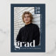 Celebrate a major milestone with this modern, editorial-style graduation announcement designed for a refined, masculine look. Featuring a muted navy blue background, soft white typography, and real silver foil accents, this double-sided graduation card delivers a timeless yet fashion-forward presentation. The template allows you to personalize the class year, graduate’s name, and school on the front with your main photo, while the back includes space for a custom message and a 3-photo collage. Designed for graduates who want a clean, confident announcement with premium foil detailing and modern typography. © Kimbellished, LLC