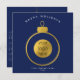 A simple and stylish business or company Christmas navy blue and gold Christmas ornament "Happy Holidays" 2026 calendar card design that can be customized to your logo and text. Customize further with your own card colour and texture.