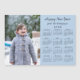 Send your wishes for a Happy New Year with a 2026 calendar magnet card personalized with your photo on the left and your greeting and name above the calendar on the right. Replace the sample image and text in the sidebar. The custom text is in a cool black handwritten script font. Below it is a black calendar on a light blue background.