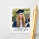 These classic graduation party invitations feature a custom photo and traditional typography. Their small business card size makes them easy to hand out to friends, classmates, and family, or as insert cards to include with your graduation announcements. Upload your own photo, and personalize the text with the graduate's name, the party's date, time, location, and RSVP details. Designed with a sophisticated and minimalist aesthetic, these invitations are ideal for graduates who appreciate timeless style. They are perfect for high school, college, or university graduation celebrations. Printing colors: black and white. Explore the online collection for matching printed design templates!