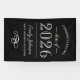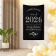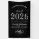 Elegant and modern custom "Congratulations Class of 2026" graduation party banner sign features a classic black and white color scheme with a scroll design accent. Personalize with the graduate's name and school. Note, design colors can be customized to coordinate with other party or school colors.