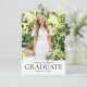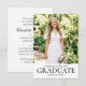 Elegant graduation party invitations featuring classic typography and a custom photo. This small format card is perfect as a convenient insert with graduation announcements or as a standalone invitation. Upload your own photo, and personalize the text with the graduate's name, graduation year, the party's date, time, location, and RSVP details. Designed with a sophisticated and minimalist aesthetic, these invitations are ideal for graduates who appreciate timeless style. They are perfect for high school, college, or university graduation celebrations. Printed colors: black and white, or customize the color to match your university, school, or college. Available as a printed card or a digital download. Explore the online collection for matching design templates!