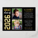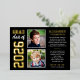 Celebrate your graduate in bold style with this modern two-photo graduation foil invitation on a sleek black background. The front features real gold foil “2026” with personalized name and school, plus space for open house or grad party details. A clean coordinating backside is included for your party information, RSVP, and address.