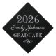 2026 Graduate Elegant Black and White Custom Graduation Cap Topper