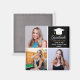 A classy custom senior graduate photo collage graduation magnet with a black square for a high school senior graduating with the class of 2026. Customize with your senior portrait pictures, school name and graduating class under the elegant calligraphy for a great personalized graduation gift. It features a 3 photograph template separated by white lines. Your name is written in gold for a chic touch.