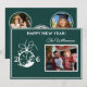 2926 Happy New Year Script photo Collage Multi-Photo Holiday Card -- featuring modern script -- the year spelled out with the "aid" of a clock -- and four of your favorite photos -- one on the front and three on the back. It is a happy and joyful -- yet sophisticated - way to send new year's wishes to friends and family. If you need any design assistance, just send a chat or an email to charmdesignstudio@rcn.com and we'll be delighted to assist.