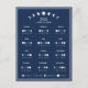 Colour Customizable 2026 Moon Phase Lunar Cycles Dark Blue Colour Minimalist Art Calendar Postcard