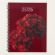 2026 Planner with dark red, burgundy planner with beautiful red carnation flowers.
